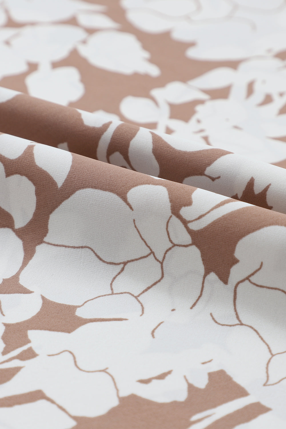 Amelie Light French Beige Floral Print Frilled Neckline Flounce Sleeve Blouse
